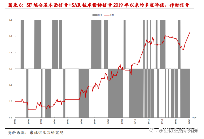 在得到基本面综合择时信号,进一步考虑与技术指标SAR的信号结合提高胜率、降低回撤。具体方法参考我们的专题报告。