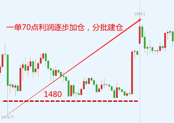 波段:之前布局的波段多1495於1530附近做減倉處理後,低位多單持有改保本,一單中長線帶你豪取百萬利潤!