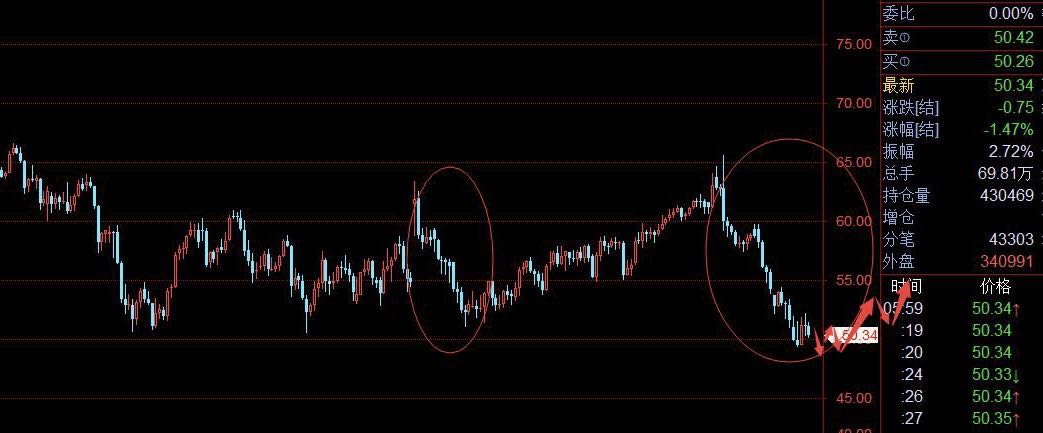 本原油下跌2.50%,以连续五周下跌。而上次发生连续5周调整还是在2018年11月,当时从76.9美元跌到42.36美元。所以本次下跌一定要注意,另外重点观察原油周X线3K形态出现的逆转信号,稍后我们会进一步的分析讲解。当下来看下跌动力明显下降,而且开始出反复性。造成本周原油持续震荡调整的主要因子是: