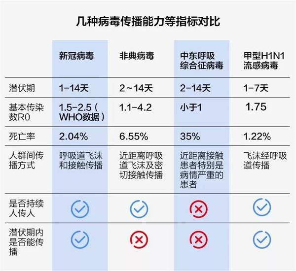 我们将新型冠状病毒与2000年后引发全球性疫情的其他3种病毒对比后,总结出新型冠状病毒的四大特点:传播能力较强;持续人传人;潜伏期长;致死率较低。