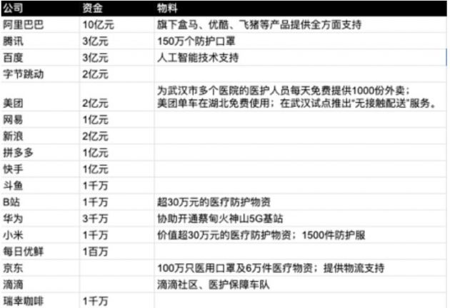 “财大气粗”的互联网公司还能够为一线提供物资和资金上的支持。1月24日,包括协和医院在内的武汉多家医院宣称物资告急,请求外界支援。