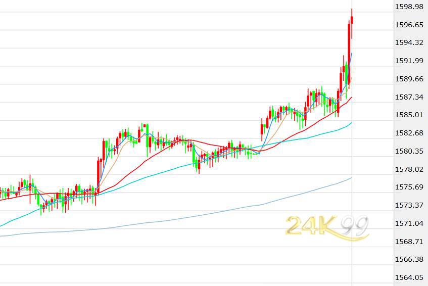 北京时间23:53,现货黄金上涨17.48美元,涨幅1.11%,报1598.28美元/盎司。