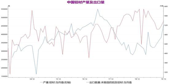 铝合金方面,我国多年来一直是铝合金的生产大国和净出口国,但出口基数较低,对铝价影响有限。铝材方面,根据中国国家统计局的数据,2019年12月生产铝材522万吨,环比增加11.42%,同比大幅增加17.44%;2019年1-12月铝材生产累计为5252.2万吨,同比增加15.32%,增速较1-11月份扩大3.03个百分点,去年铝材产量较前年出现较大增长,主因在去年下半年下游需求好转,铝材产量持续回升,以及受益于前年低基数效应。根据海关数据显示,2019年12月未锻造铝及铝材出口量47.8万吨,环比增加6.22%,同比下降9.81%;2019年1-12月未锻造铝及铝材出口累计为572.6万吨,同比下降1.28%,并且降幅较1-11月份继续扩大0.9个百分点,去年我国铝材出口出现明显增加,不过在第三季度铝材出口便出现明显的回落,主要由于全球经济增长乏力加之贸易摩擦,导致需求表现疲弱,以及沪伦比值持续扩大导致铝材出口利润缩小,使得出口需求大幅下降。今年经济整体表现将略好于去年,国内房地产行业及交通领域需求将出现好转,不过受年初新冠肺炎疫情影响,需求释放或将延后甚至减少,短期对下游需求造成较大负面冲击。