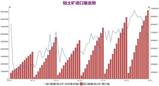1、铝土矿进口量同比增加