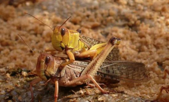成年蝗虫高度适应高温和干旱环境,每平方米土壤可以容纳1000只虫卵。
