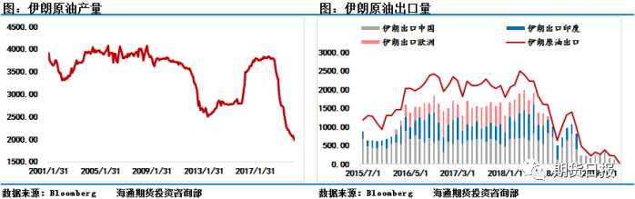 另外我们还需要重点关注两个被美国制裁的国家:伊朗和委内瑞拉。本周,美国决定制裁同委内瑞拉进行贸易交易的俄罗斯国家石油公司的船运子公司,这意味着委内瑞拉的原油出口进一步受阻。去年我们领略到了美国制裁伊朗出口的手段,1月份伊朗的原油出口已经仅仅剩下2万桶/天,与其峰值的250万桶/天相比基本可以忽略不计。