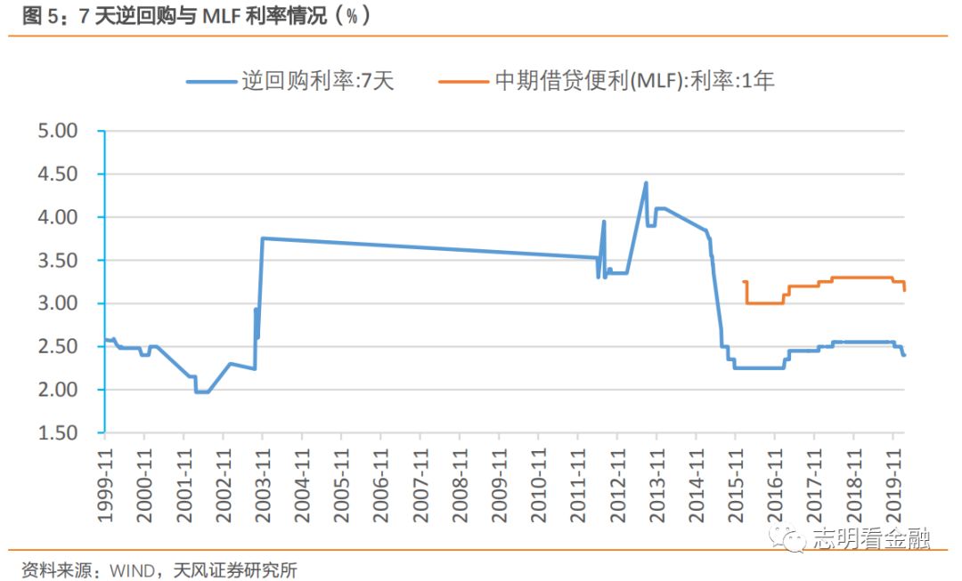 LPR跟随MLF利率变动。19年8月17日,央行发布19年第15号公告,改革完善贷款市场报价利率(LPR)形成机制。新LPR利率以MLF利率为基础,与其相挂钩。新机制形成以来,MLF利率共下调过2次,合计15BP;MLF利率下调当月,LPR利率均跟随MLF下调。