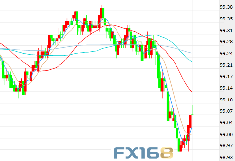 美市盘中,美元指数DXY短线下跌约36点,失守99整数关口,至2月13日以来最低点98.96,上周曾触及近三年高点100。