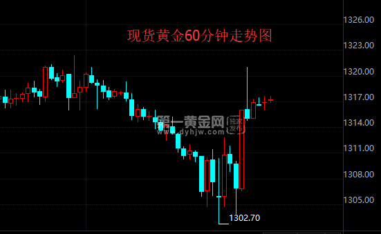 国际现货黄金周四(3月1日)亚市早盘开于1317.94美元/盎司,随后金价震荡下跌,美市金价跌幅加剧,再触及日内低点1302.70美元/盎司后止跌反弹,多头猛攻,触及1321.00美元/盎司后小幅回落,终收于1316.54美元/盎司。