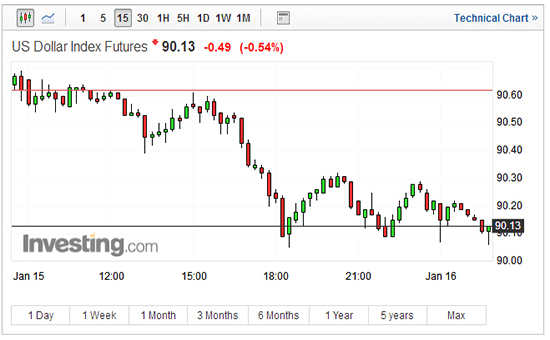 美元指数下跌超过0.5%,盘中降至90.05点,为2015年1月初以来最低。
