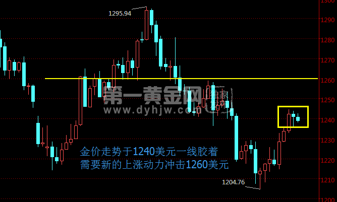 从日线图来看,国际黄金走势正在胶着于1240美元附近,多头上升动能逐渐消耗,急需新的推力助阵。下周黄金7月收官,多头能否找到“真命天子”冲击1260美元呢?此外,今晚德拉基讲话也许会引起金价的短线波动,具体详情请看:《黄金上涨跳板》。