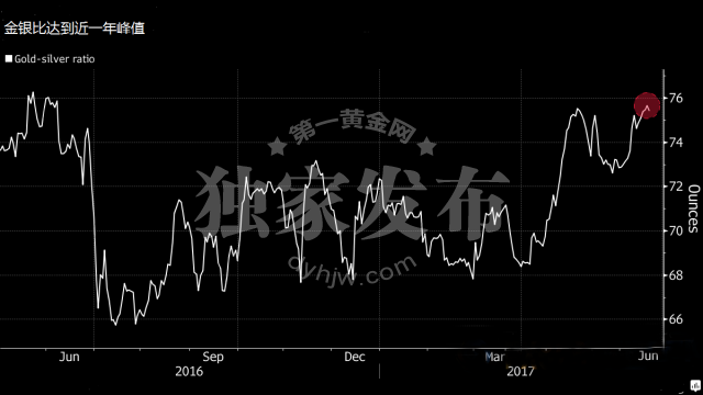 在过去一年的时间里,相对于白银来说,黄金是贵的。贵金属在2016年第二季度几乎没有变化,而白银则下跌了9%。当贵金属走弱时,白银的下跌幅度往往超过黄金,而牛市的时候这一比例则相反,金银比已从过去十年间62.5的平均水平上涨至75。