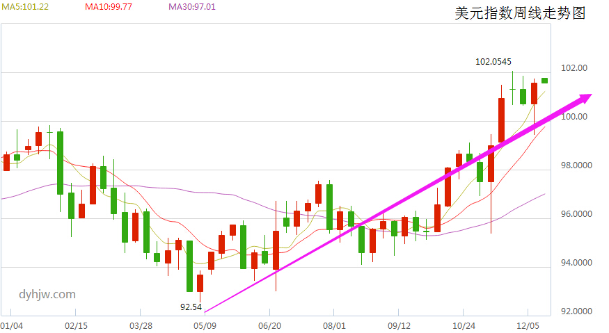 核心摘要:随着美联储12月加息脚步逼近,在加息预期下,美元已经连续走强,投资者不禁要问:美元的大牛市在2017年还会持续下去吗?在美元走强的大背景下,黄金或将在2017年急转直下。随着美联储12月加息脚步逼近,在加息预期下