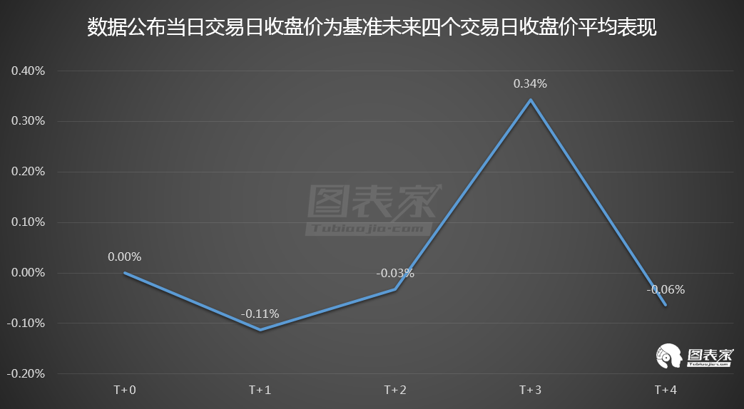 以利率决议公布当日交易日收盘价格为基准的5个交易日中,Data Talks发现,价格在T+1交易日收盘到达底部,并于T+3交易日收盘达到顶部。从价格的涨跌幅度来说,先做多再做空黄金将有不错收益。