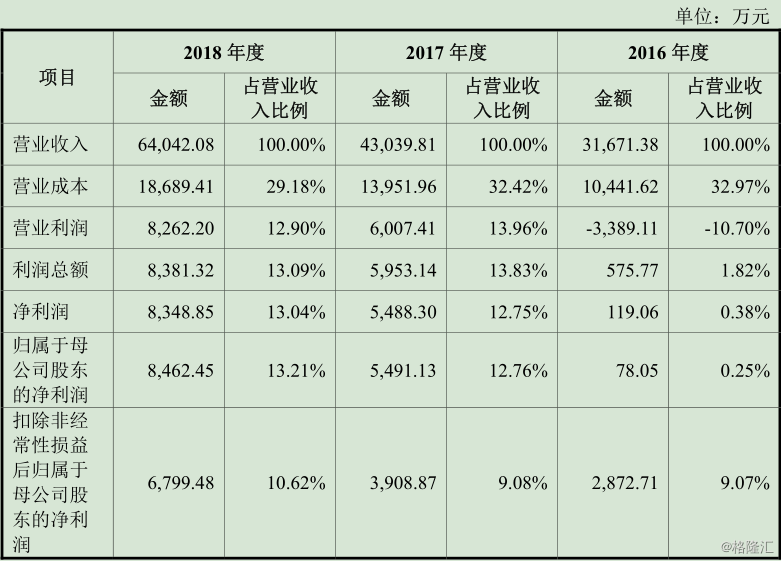 从财务数据来看,2016-2018年期间,公司营业收入分别为 31,671.38 万元、43,039.81 万元及 64,042.08万元,实现了大幅度增长。