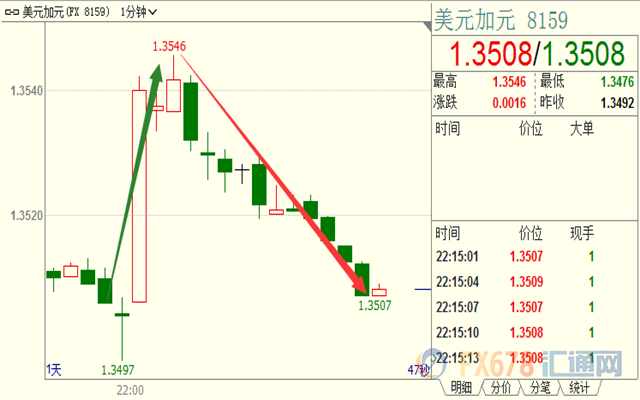 美元兑加元一度上冲40点至1.3546。截至发稿,汇价回吐大部分升势,交投于1.3512附近。