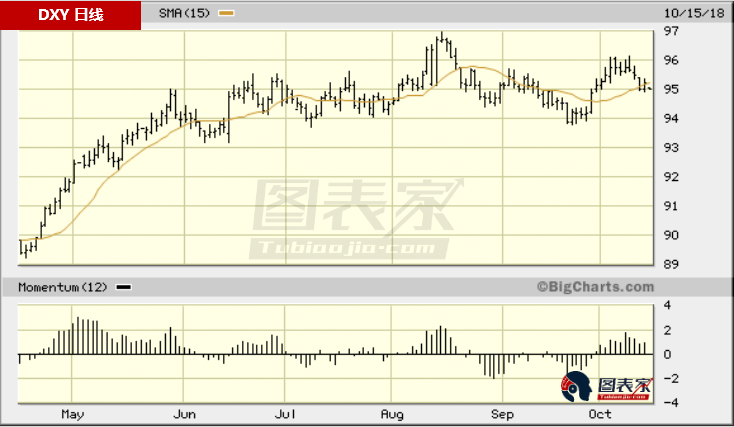 但近期阻止金价上涨的最大障碍之一将是美元指数(DXY)的持续走强。由于国际投资者纷纷涌向美元,以对冲新兴市场风险,黄金的交易区间依然很狭窄。但上周美元指数跌破15日移动均线,出现一系列更低的高点之后,说明美元的短期需求不再那么强劲。
