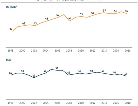* 该类养老金计划包括私人雇主发起的规定缴费计划(包括401(k)计划)、403(b)计划、457计划以及联邦雇员退休系统储蓄计划。 数据来源:ICI,美联储,劳动部、国家政府规定缴费机构协会,美国生活保险理事会、国内税务署收入数据部。详见ICI发布的《2018年第四季度美国养老金市场分析报告》。 |