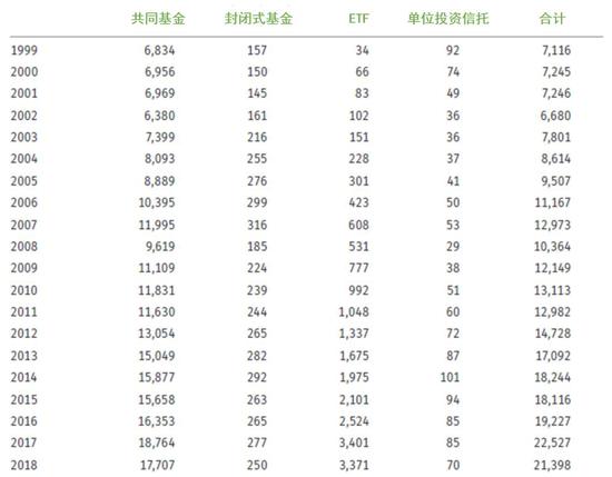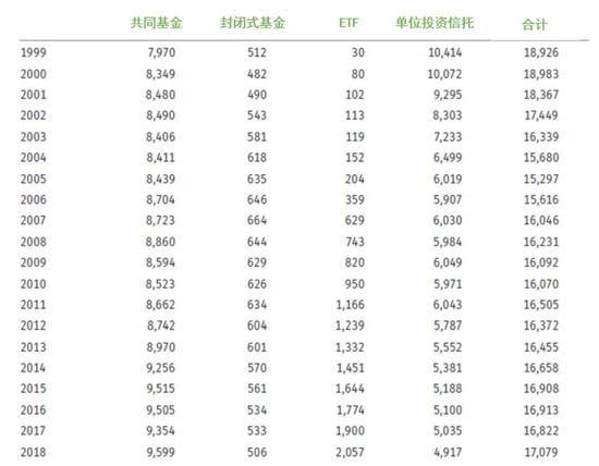 图2.15 1999-2018年美国不同类型投资公司数量 |