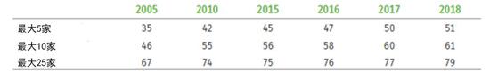 在过去十年,尽管共同基金和ETF资产管理的行业集中度提升,能够吸引新资金流入长期共同基金的基金占比减少。2005年到2018年,规模最大的五家基金公司管理的资产比例由35%上升到51%,而规模排名前十位的基金公司管理的资产比例由46%上升到61%(图2.12)。在市场集中度提升的同时,中间层公司的份额被不断蚕食,排名11至25位的基金公司,其市场份额从2005年的21%下降到2018年的18%。
