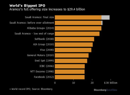 沙特阿美利雅得上市后一个月,其最终首次公开募股(IPO)规模再上台阶。