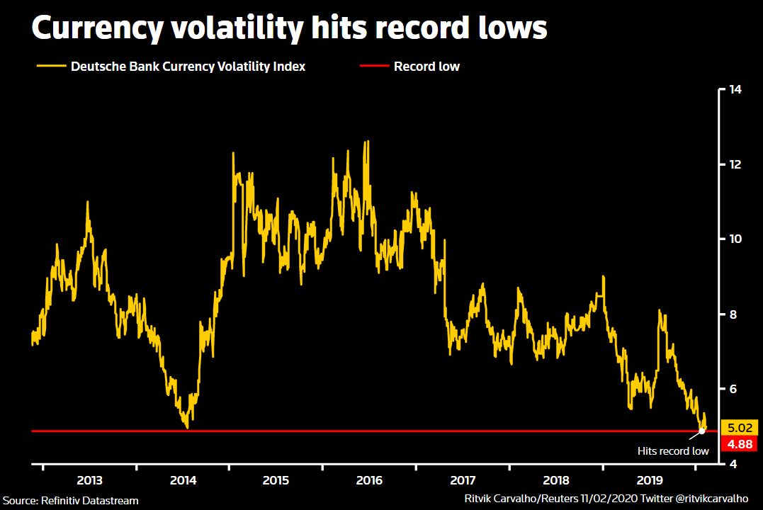 在2019年创下问世20年来最窄的全年波动幅度后,欧元过去一周的最新跌势,似乎预示着沉睡多时的空头“巨兽”彻底苏醒了,接下来甚至可能迎来更大规模的跌势。