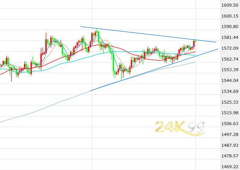 (现货黄金4小时图,来源:24K99)