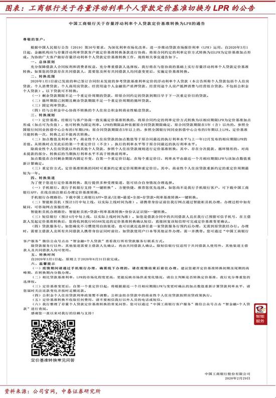 存量浮动利率贷款定价的转换原则:与5年期LPR挂钩。1)转换对象:2020年1月1日前已发放的和已签订合同但未发放的、参考贷款基准利率定价的浮动利率贷款(不含公积金住房贷款)。2)选择一:转换为固定利率。即执行利率仍为当前合同下利率,当前贷款定价为原5年期贷款基准利率上浮或下浮一定比例(针对贷款期限在5年以上的商业住房贷款,下同)。3)选择二:切换为“5年期LPR+固定加点”的定价模式。后续合同执行利率均按此模式进行,初始加点数值确定为=原合同当前的执行利率水平-2019年12月发布的LPR(4.8%),可重新商讨重定价日,重定价周期最短为一年。4)未来房贷利率的变化取决于5年期LPR的变化。若进行切换,从最终结果看,为保证平稳过度,2020年重定价的住房贷款仍维持原利率水平,2021年及之后重定价日参照最近一期LPR进行重定价。即未来房贷利率的变化取决于5年期LPR的变化。